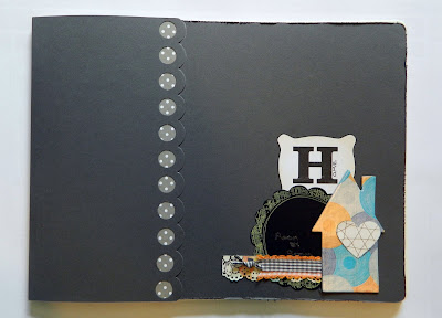 For the cover you’ll need two pieces of cardstock. Measure the Width of your book and add 4 more inches. I used a Border punch and a piece of pattern paper to decorate the part where my two papers are glued together. To make the fold for the Spine measure the thickness of your pages and score it on the cover, this should leave a 3-3.5” flap.